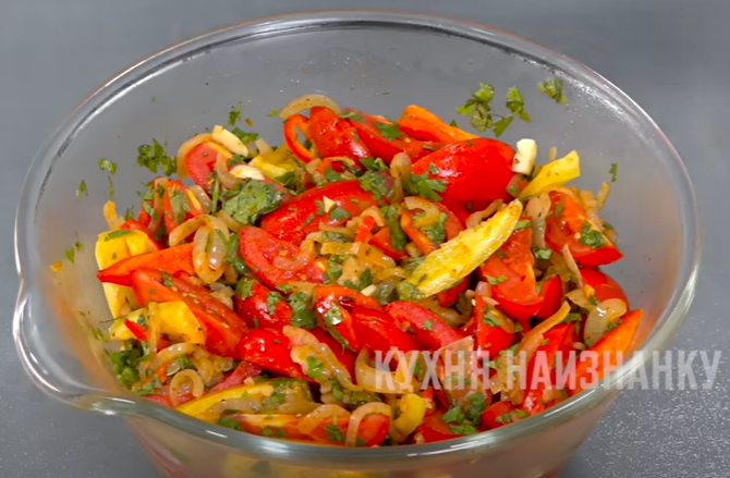 Ароматная, острая и свежая закуска, которая отлично подходит к мясу, рыбе или как самостоятельное блюдо. Ингредиенты: Приготовление: Подача Подавать охлаждённой. Чем дольше настоится, тем вкуснее и ароматнее получится закуска. Рецепт взят с канала КУХНЯ НАИЗНАНКУ